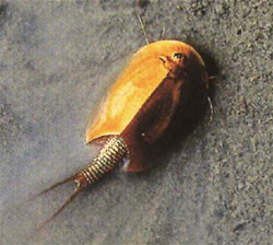 Triops cf. cancriformis besitz einen längeren Schild als der in "Irrtümer der Erdgeschichte" vorgestellte Schildkrebs.